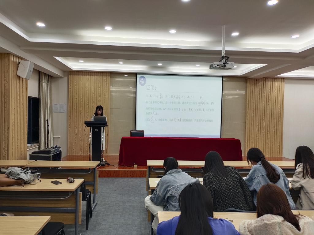 驱动的离散时间随机系统的随机形式的LaSalle定理,并在此基础上得到了李亚普诺夫型稳定性判据。最后,张彤彤对本次讲坛的内容进行总结:LaSalle定理在研究随机离散时间差分方程稳定性方面具有非常重要的作用,且随机LaSalle定理的一个潜在应用是发展非线性离散时间随机