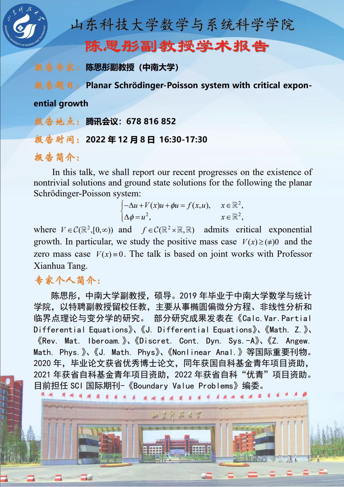 陈思彤副教授学术报告