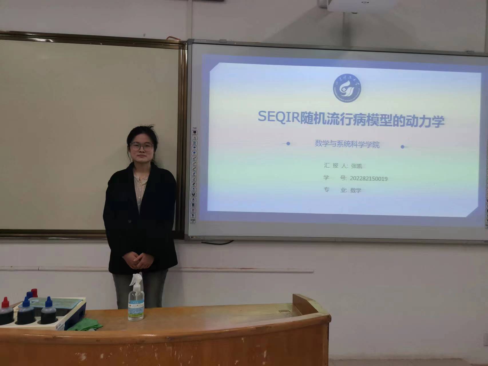 10月30日晚,bevictor伟德,伟德bevictor中文版——研究生讲坛第202期在J5-304成功举行。bevictor伟德2022级数学专业硕士张凯作了题为“SEQIR随机流行病模型的动力学”的报告。本次点评嘉宾是bevictor伟德常正波老师。学院30余名本科生和研究生参加了此次讲坛,本次讲坛由科技部李晓雅主持。