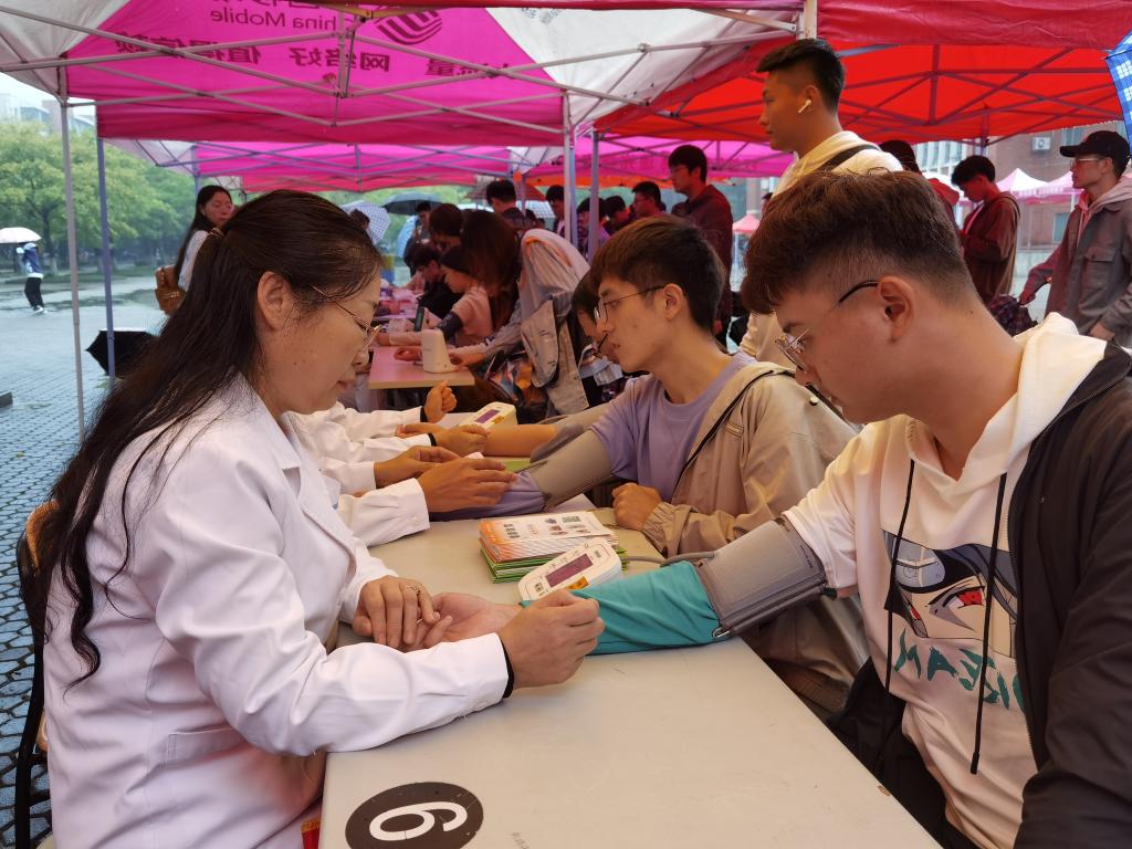 “养成良好运动习惯可有效预防和控制高血压...”“高盐饮食会显著增加高血压患病风险,成人每天食盐摄入量不超过6克...”活动现场,多名专家和医护人员为前来咨询的师生进行认真细致的检查和解答,测量血压,把脉问诊,讲解宣传健康知识,发放减盐防控高血压、盐与健康等宣传折页。针对血压较高的师生,医护人员在饮食、运动、用药等方面给出建议和自我健康管理方案,并叮嘱日常生活注意事项。活动中还通过设置有奖知识问答等多种形式,普及高血压防治健康教育,现场参加咨询活动的师生络绎不绝。