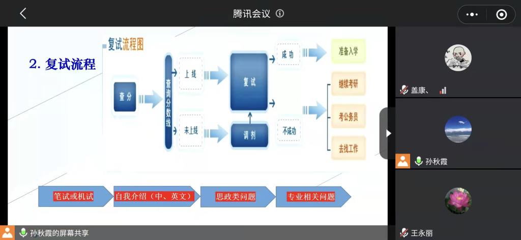 为帮助学院考研学子熟悉复试流程,掌握复试技巧,提升考研复试通过率。近日,学院各系部教师和学霸助教团党支部成员纷纷上线,为考研复试备考学生组织了多场线上模拟复试、交流答疑活动。