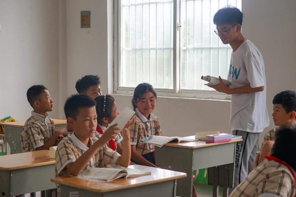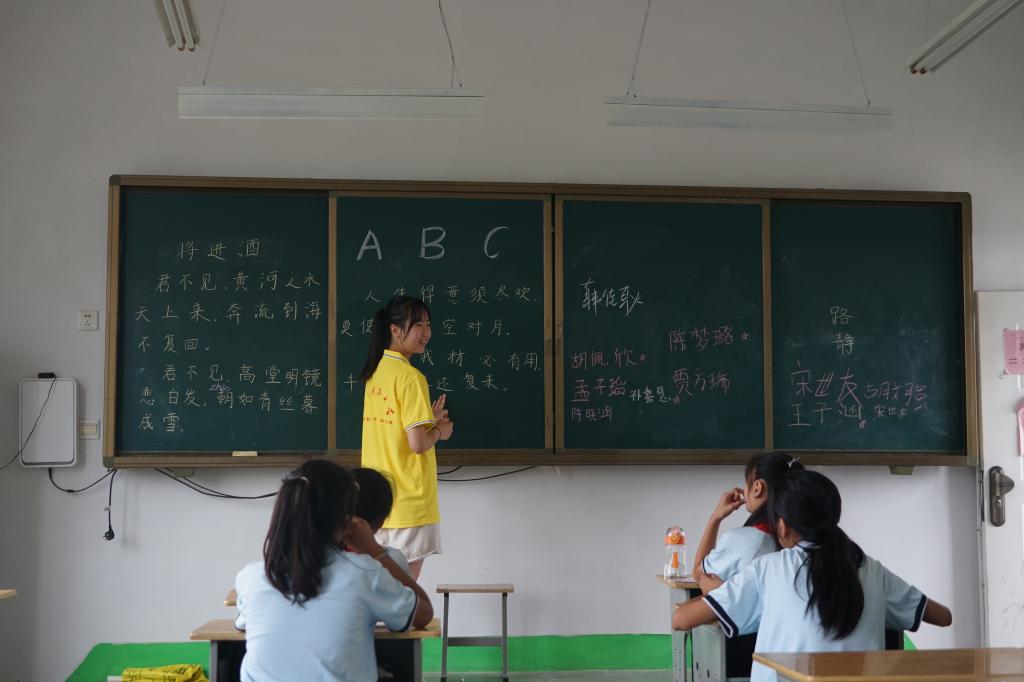 树林荫翳,清风微凉,课堂上不时传来阵阵孩子们的欢笑声。志愿者们以所学专业为弓,以丰富知识为矢,给孩子们带去了英语、数学、古诗词等生动有趣的知识小课堂。