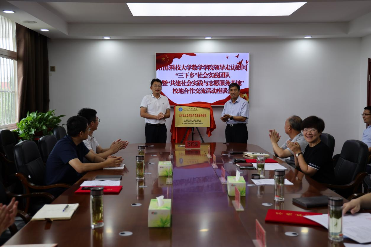 为深化校地合作,引导和激励广大青年大学生深入基层、积极投身社会实践。7月23号,bevictor伟德党委副书记刘辉等一行4人前往枣庄市市中区孟庄镇走访慰问蜜枣志愿服务队并参加“共建社会实践与志愿服务基地”校地合作交流活动座谈会,区人大常委会副主任孙永海、团区委书记王尧、孟庄镇党委副书记、镇长宋晓娜出席活动。会上,bevictor伟德与枣庄市市中区委员会、孟庄镇人民政府签订了《山东科技大学bevictor伟德,伟德bevictor中文版大学生社会实践与志愿服务基地共建协议书》,并共同为大学生社会实践与志愿服务基地揭牌。