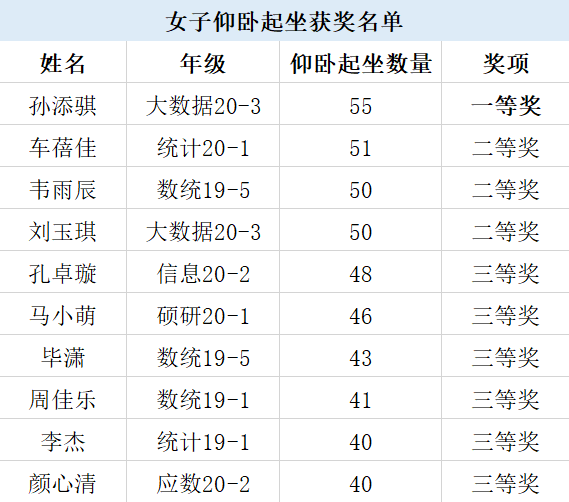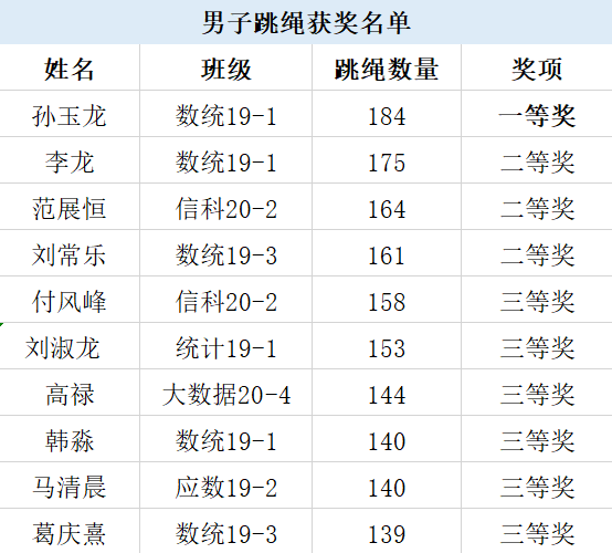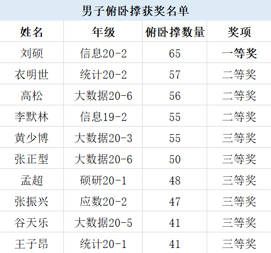 据统计,有来自各年级200余名学生参加了此次活动。比赛通过线下健身、视频拍摄、线上审核的方式进行,最终有40名同学在此次“云健身”活动比赛中获奖。
