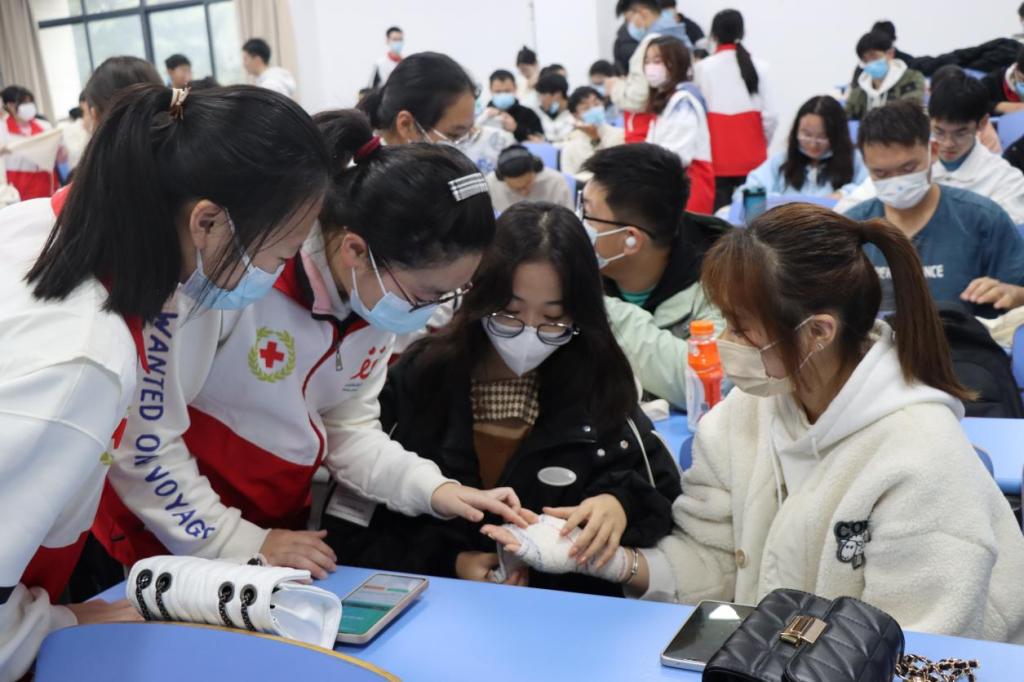 活动中,宣讲团成员强调了学习急救知识的重要性,普及了生活中常见的自救互救相关知识,主要包括气道异物梗阻、烧烫伤、一氧化碳中毒、食物中毒以及踩踏伤等突发情况的处理方法和急救手段,并为同学们现场演示急救方法。“掌握了急救本领,就像我们平时学到的书本知识一样终身受用,一旦遇到意外发生,我将会更有信心伸出援手,汇聚青春热血,传递生命希望”“今后的学习生活中万一遇到紧急情况,可以派上用场,在保护自己和家人的同时,积极帮助他人,很有意义”...同学们纷纷表示。