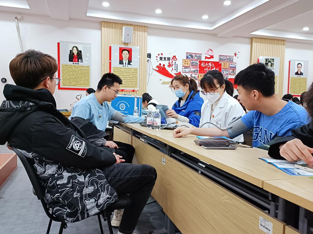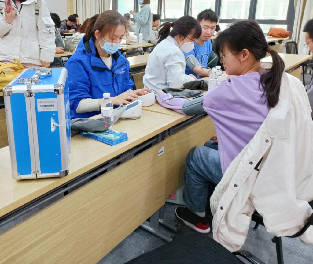 交流讨论环节,同学们积极向孙医师咨询养肝护肝方面的生活小问题,得到孙医师的热心解答。讲座结束后,灵珠山医院医护工作人员们还为同学们现场测量了血压。