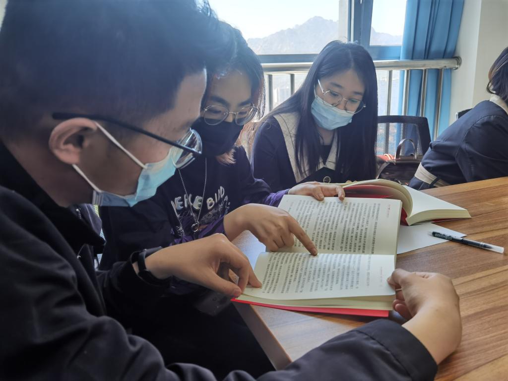 活动中,“青马”学员三人一组通过领读或共读的形式学习《习近平与大学生朋友们》一书中的章节选段,小组内学员进行交流后由各组推荐1名代表与大家分享小组的读书感悟。
