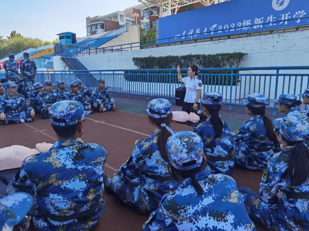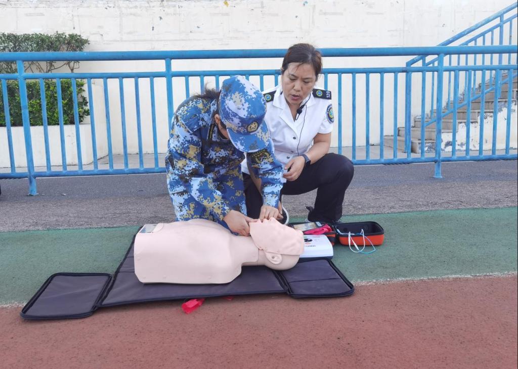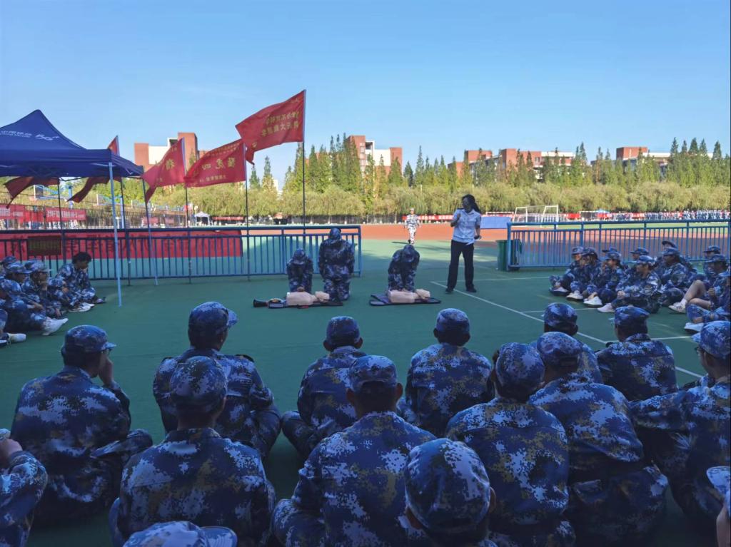 “心肺复苏前要评估环境安全” “使用AED除颤仪时需要注意除颤时间”……活动现场,西海岸急救中心的讲师正在为bevictor伟德大一军训学员上一堂生动的生命“必修课”。