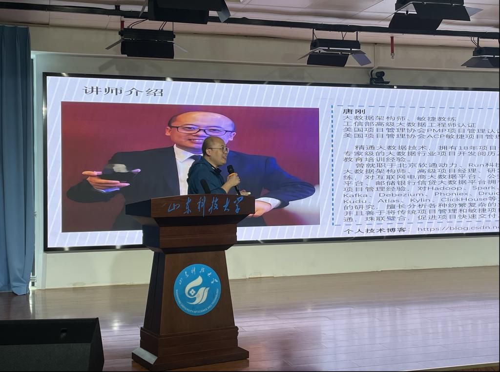 唐刚从人才所应具备的核心素质及能力、大数据产业对人才的要求以及如何学好大数据专业等方面为同学们进行了分享,他建议同学们要培养良好的时间管理能力和沟通协调能力,不断结合专业特点打造自身优势,为踏上更高人生平台打下坚实基础。赵杰为同学们作了“华为云原生数据湖使能数据价值”的专题报告,通过介绍华为云的发展历程,为同学们带来了前沿技术分享,开阔了同学们的眼界。