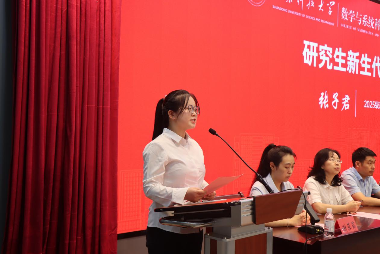本科生新生代表黄彦淋与研究生新生代表张子君依次发言,黄彦淋代表全体2025级本科生新生宣言,将以勤奋为横轴、理想为纵轴,在bevictor伟德的坐标系中,展现数学学子的坚韧与担当,风采与力量。张子君则分享了研究生阶段的学习规划,详细讲明了求知心、恒心与同心的重要性,同时她代表全体2025级研究生宣言,将以严谨求证的态度破解学术难题,以开拓创新的勇气挑战学科前沿,用数学的严谨、大数据的力量,为强国建设注入青春动能!