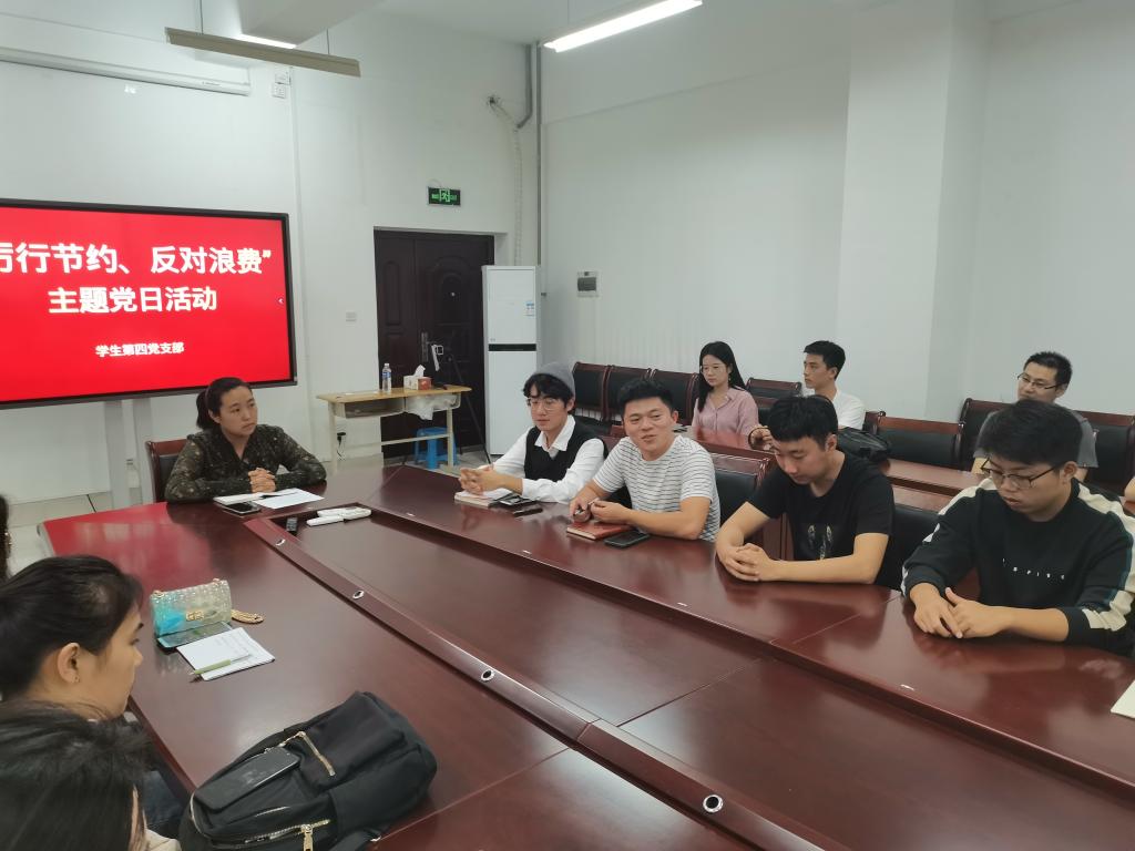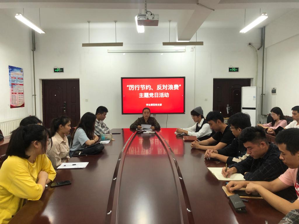 9月25日晚,bevictor伟德学生第四党支部在J9-425会议室开展了“厉行节约、反对浪费”主题党日活动,学生第四党支部全体党员参加。活动由党支部书记谢菲菲主持。