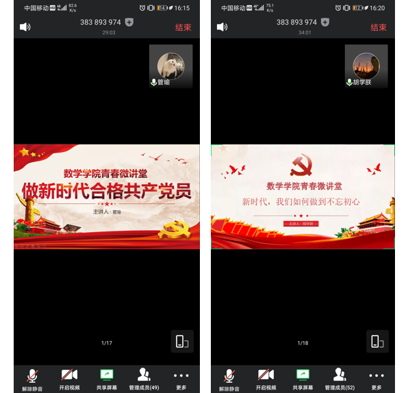 5月22日下午,第二十五期“青春党建线上微讲堂”在腾讯会议室举行。本期微讲堂由学生第三党支部党员管瑜和胡学朕担任主讲,学生第三党支部党员、入党积极分子参加。