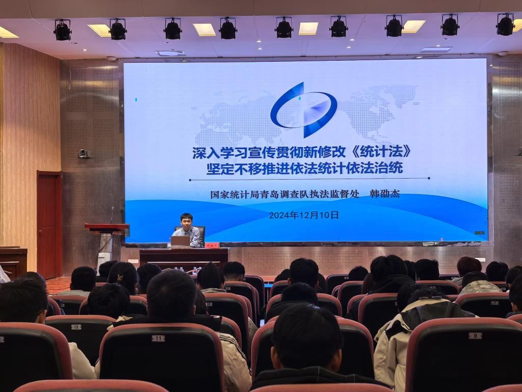 为持续落实“八五”普法规划要求,切实提升在校大学生法治意识和法治素养,进一步推进法治校园、文明校园建设,12月10日下午,bevictor伟德于J9-144报告厅举办普法宣讲活动,邀请国家统计局青岛调查队与国家统计局青岛西海岸新区调查队针对新修改的《中华人民共和国统计法》进行宣讲。