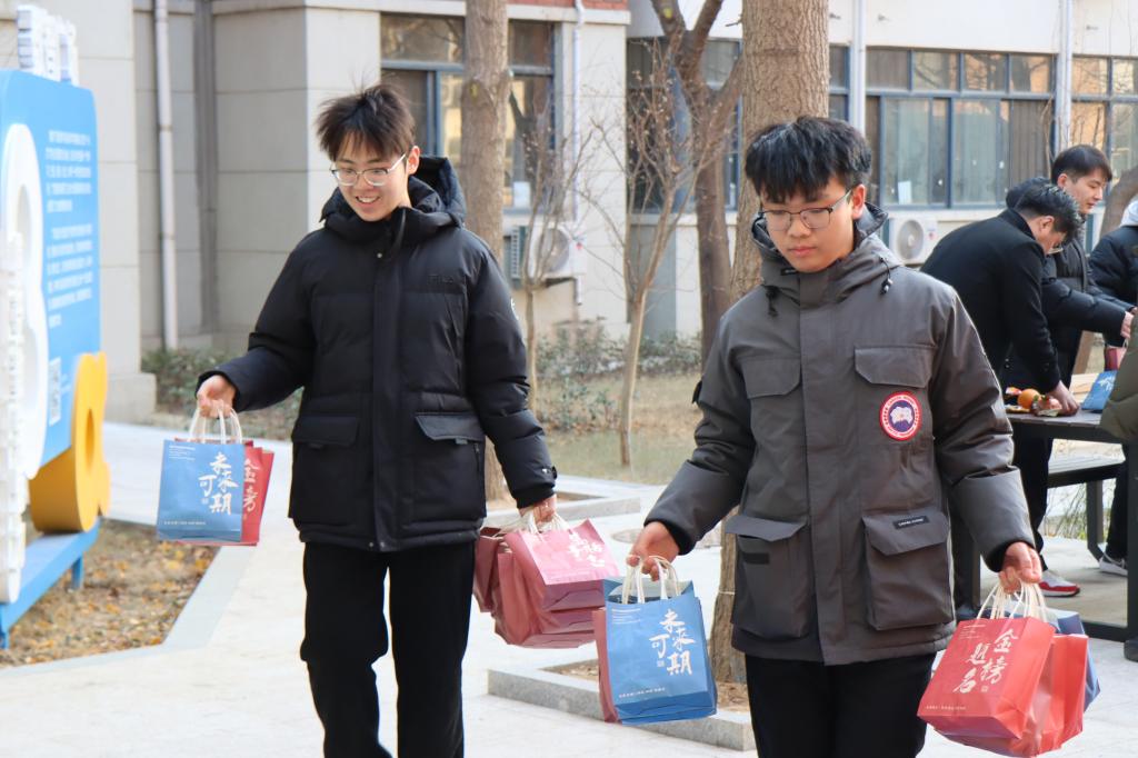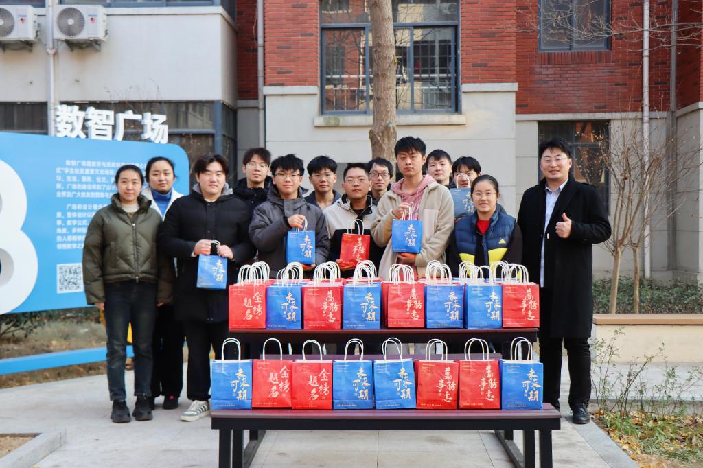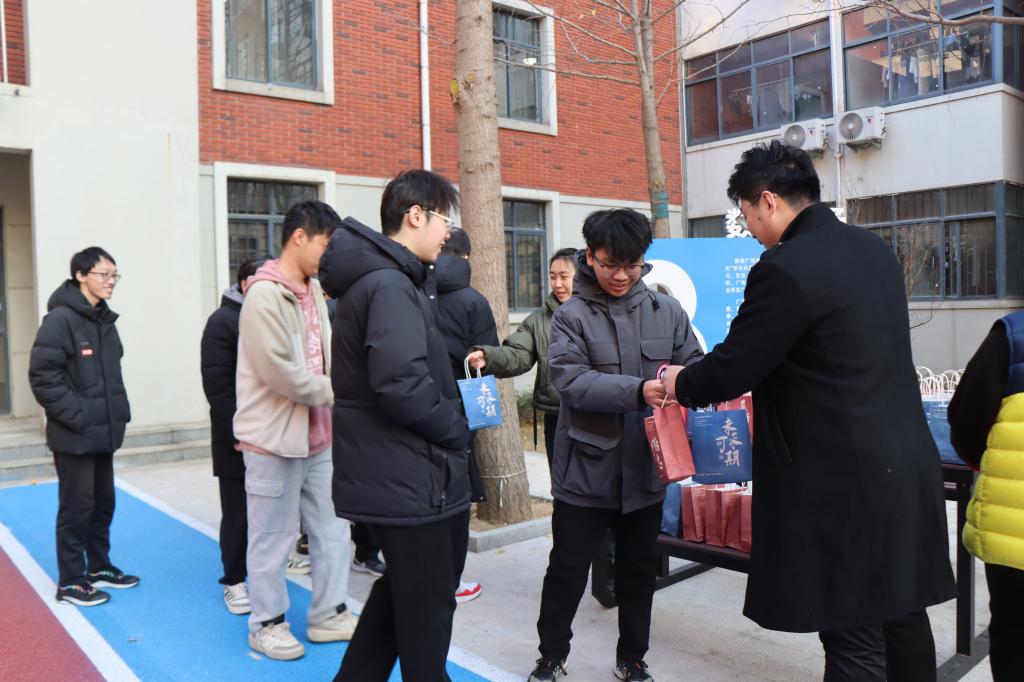 12月11日,距离2024年全国硕士研究生考试还有10天,在山东科技大学“数智广场”,近300名同学收到了一份精心准备、满载祝福的考研礼包。