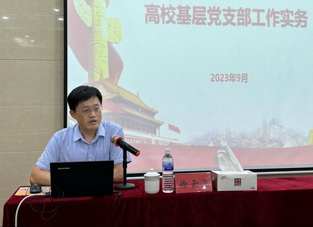 徐云飞围绕党的组织体系、党支部建设有关要求、党支部“六化”建设、党支部建设考核评价四个方面,从高校基层党组织的职责定位出发,为大家阐述了高校基层党支部工作开展要求,并结合工作实例,指出了学院党支部的建设方向。