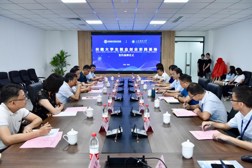 7月10日,山东科技大学bevictor伟德,伟德bevictor中文版与济南超级计算技术研究院签署大学生就业创业实践基地共建协议。齐鲁工业大学(山东省科学院)原副校(院)长贺国平,济南超级计算技术研究院院长潘景山、产学研合作部部长郭猛、综合办公室主任杨佰才,山东科技大学bevictor伟德党委书记徐明磊、院长董焕河,学生工作部副部长孔环等人出席签约仪式。徐明磊、潘景山代表双方签约。贺国平、徐明磊、董焕河、潘景山代表双方为“山东科技大学大学生就业创业实践基地”揭牌。